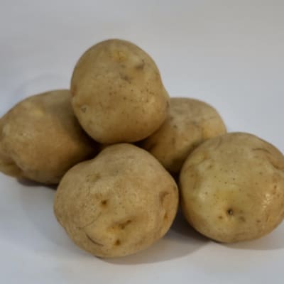 Solanum tuberosum Mid-season, buff skin, white flesh. Smooth glossy skin and uniform tuber shape and size. Starchy texture is ideal for baking, mashing, fries and homemade chips.