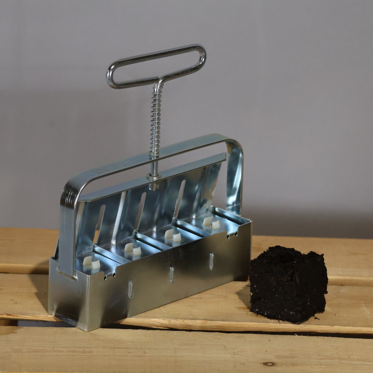 Makes four 2" soil blocks in one stroke. Using soil blocks allows for easy transplanting and eliminates root spiraling. Use with Micro Blocker Inserts to make your blocks ready to receive plants started in micro-blocks. Now in sleek black color! Made in England by Ladbrooke Ltd.