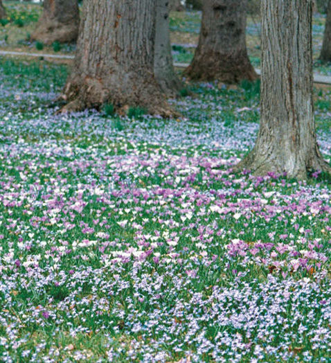 Underplant your lawn with naturalizing flower bulbs for a delightful carpet of early spring blooms! Stinzenplanten, a Dutch tradition, works best in dappled spring light beneath deciduous trees or at the forest’s edge where the grass is sparse from summer shade. In Maine it’s not uncommon to see a stinzenplanten of Snow Crocus, Chionodoxa or Squill. After a long winter, coming upon swaths of wee blooms is utterly enchanting.